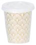 Pahvimukeissa on kaunis muotoilu kultafoliolla, jotta ne kimaltelevat auringossa. Kannessa on myös reikä pillille, joten voit ottaa ne helposti mukaasi liikkeelle tai käyttää puutarhassa ilman, että uteliaita hyönteisiä ei pääse liian lähelle juomaasi.